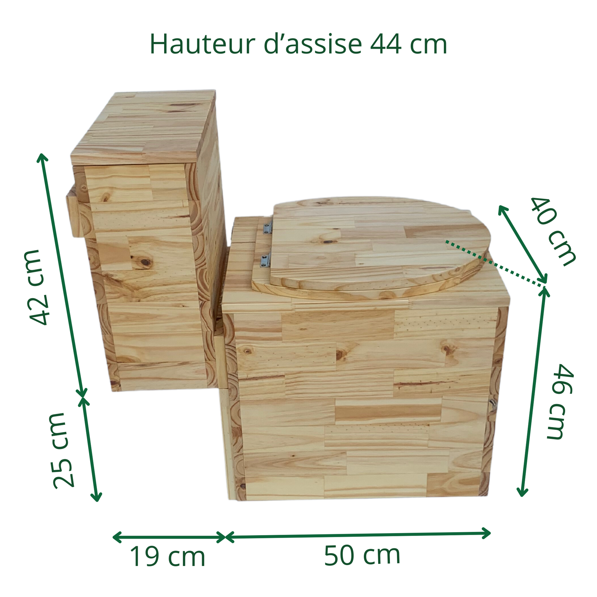 Toilettes sèches en bois massif compacte avec compartiment copeaux à l'arrière